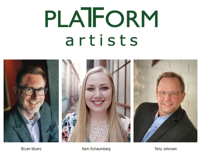 Platform Artists, a full-service talent agency, launches today and will represent Christian artists across all live events. Platform Artists consists of veteran agents Bryan Myers, Tony Johnsen, and Sam Schaumberg, who have nearly six decades of combined experience in the Christian music industry.