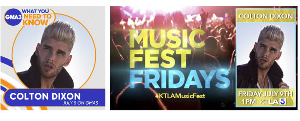 On July 9, American Idol alum and fan favorite Colton Dixon will give an interview and exclusive performance of his latest single, “Made to Fly” during Good Morning America’s afternoon program, GMA3’s Faith Friday segment, which will also be shown on the show’s jumbotron in Times Square during the live broadcast at 1pm est/12 noon cst/pst. Additionally, Dixon will also chat and deliver another exclusive performance on Los Angeles’ #1 rated KTLA 5 News at 1pm pst for their Music Fest Fridays segment.