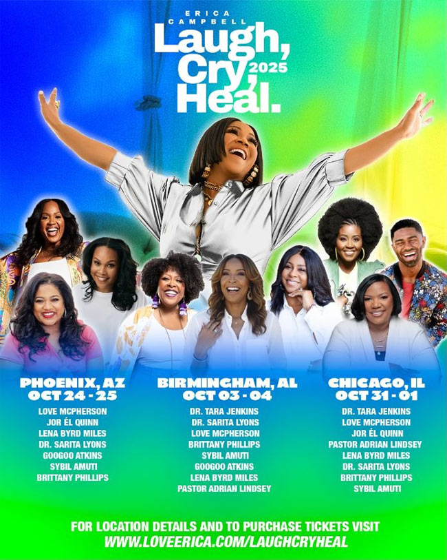 Her latest venture, Laugh, Cry, Heal, returns this October with stops in Birmingham (Oct. 3 to 4), Phoenix (Oct. 24 to 25), and Chicago (Oct. 31 to Nov. 1). More than an event, it’s a bold invitation for women to step away from performance and into authenticity, with faith, freedom, and support.