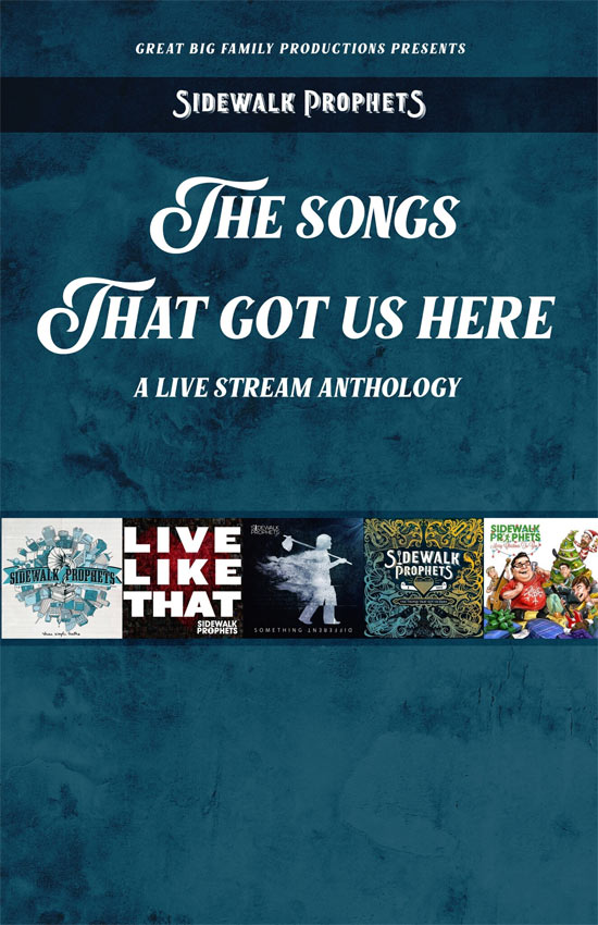 Curb | Word Entertainment’s Sidewalk Prophets announces “The Songs That Got Us Here, A Live Stream Anthology” tour, a concert event in which the band’s entire catalog will be played over the course of five nights. Each show is one-night only, with a different album being played from beginning to end each night. The livestream tour kicks off Apr. 2, 2021. Tickets will be available for purchase on Monday, March 15 at 10 AM CST HERE.