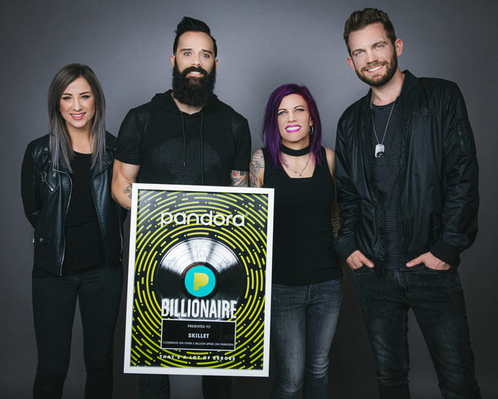 Certifications continue to roll in as Skillet gears up for the debut of their newest Victorious (Aug. 2, Atlantic Record). The multi-platinum selling super group joined Pandora’s Billionaires club with over two billion streams. The rarity is reserved for those totaling over a billion spins on the popular platform throughout an artist’s career. The distinction places them in the company of other Pandora Billionaires like John Legend, Fleetwood Mac, Keith Urban and more.
