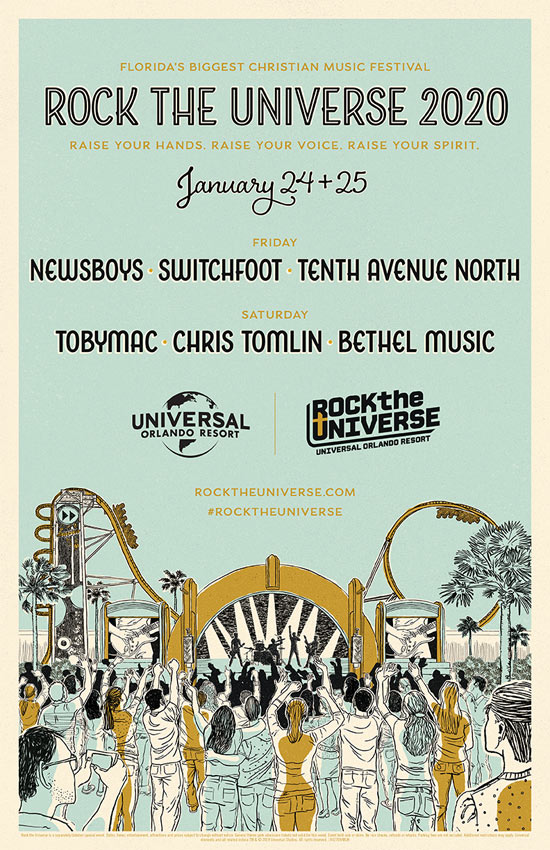 Get ready to rock, ride and rejoice at Rock the Universe on January 24 and 25 at Universal Studios Florida, as guests enjoy live performances, thrilling attractions and unforgettable worship. Performances include GRAMMY award-winning Christian hip hop recording artist, TobyMac; GRAMMY award-winning contemporary Christian music artist, Chris Tomlin; GRAMMY nominated Christian rock band, Newsboys United; GRAMMY award-winning alternative rock band, Switchfoot and more. See below for the full concert lineup.
